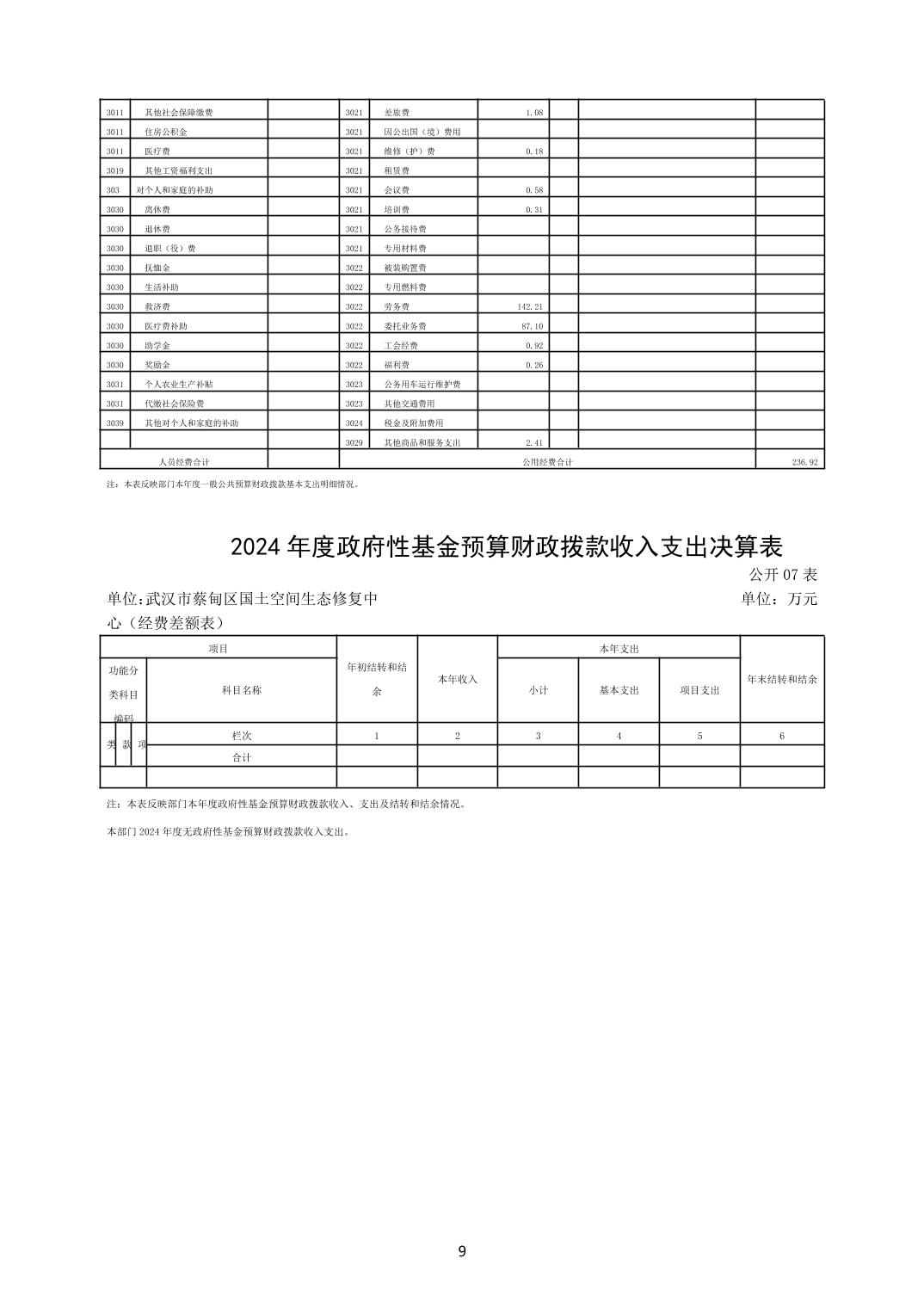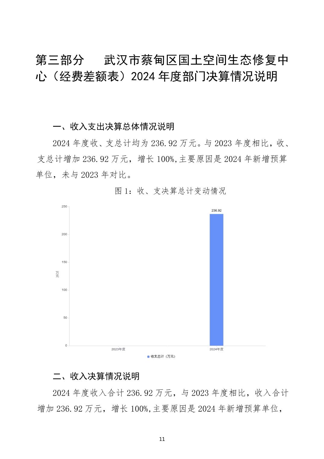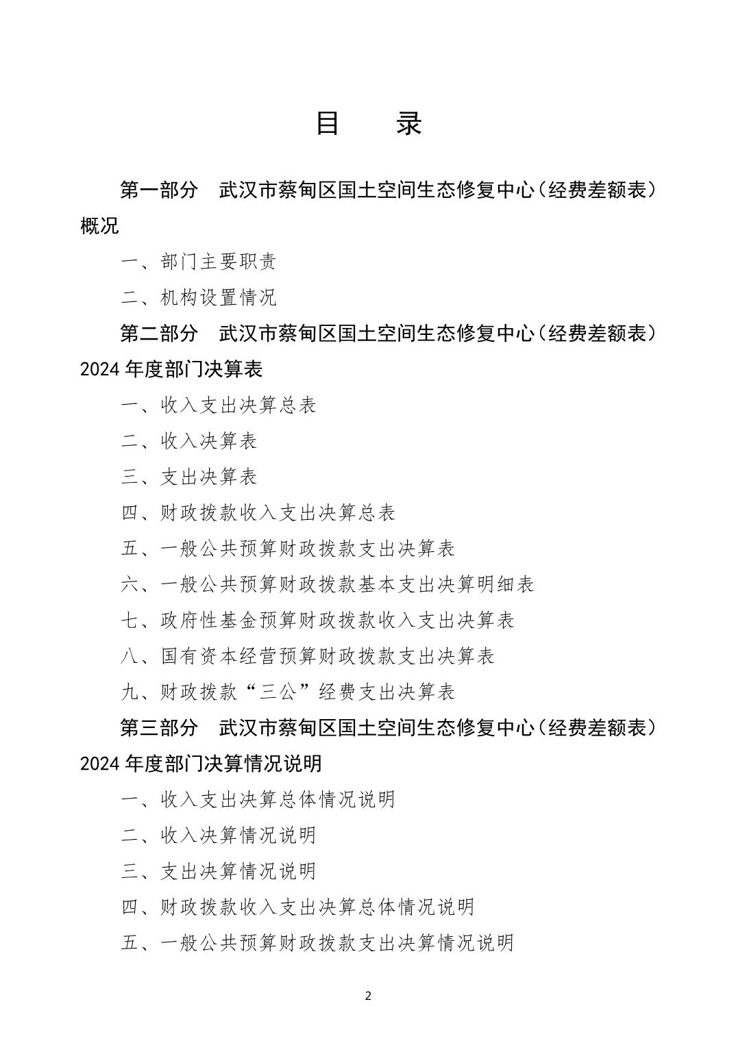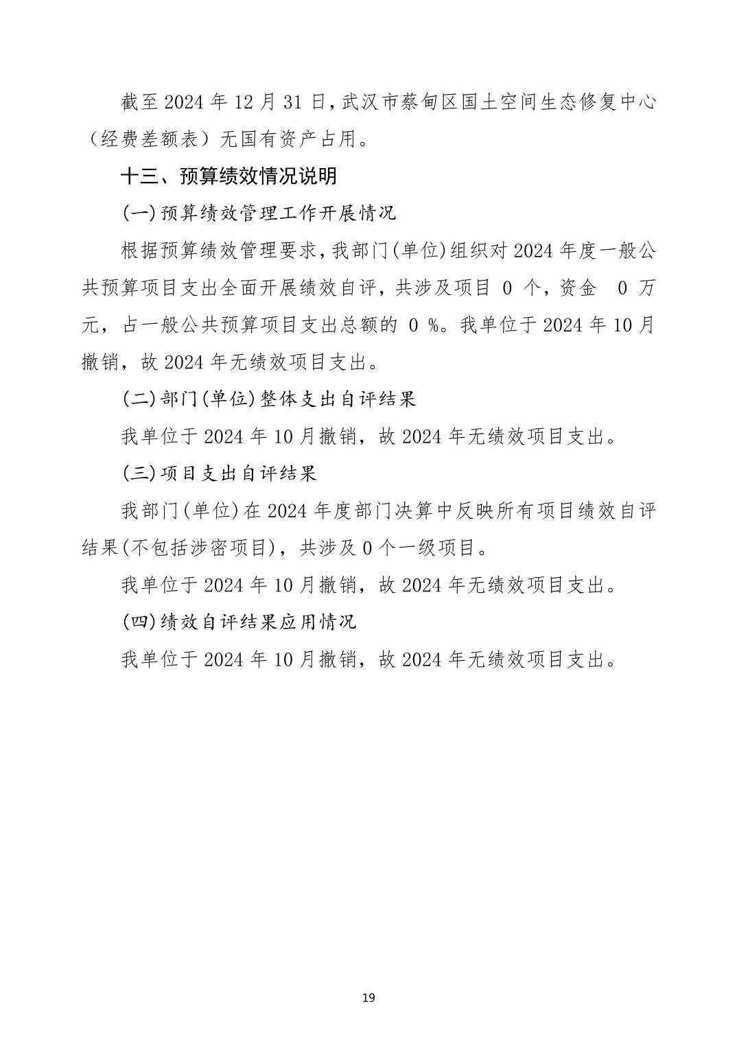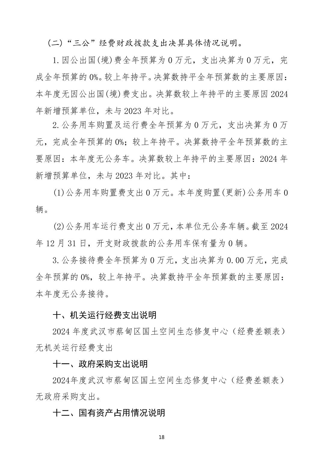 武汉市蔡甸区空间生态修复中心2024年部门决算公开