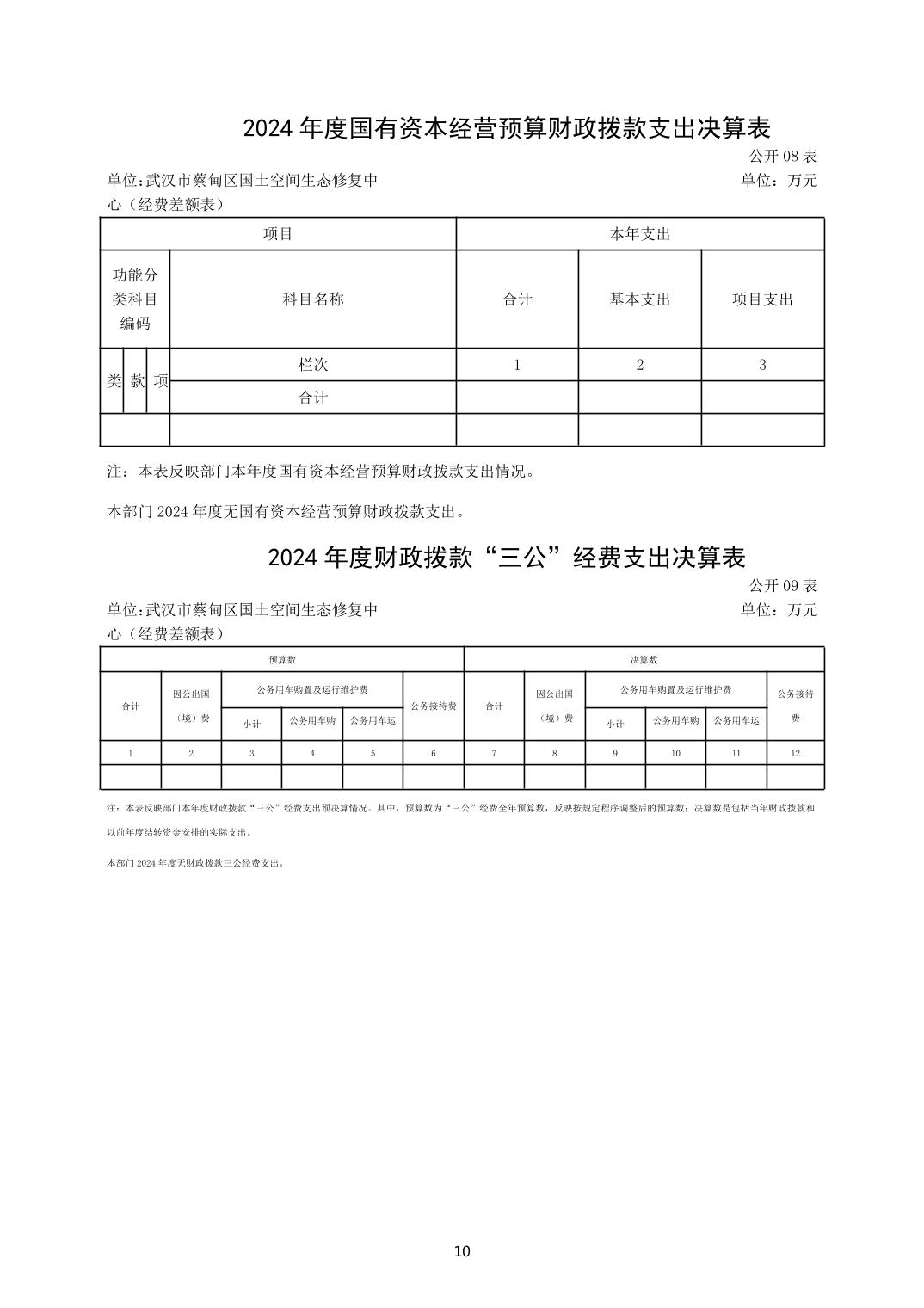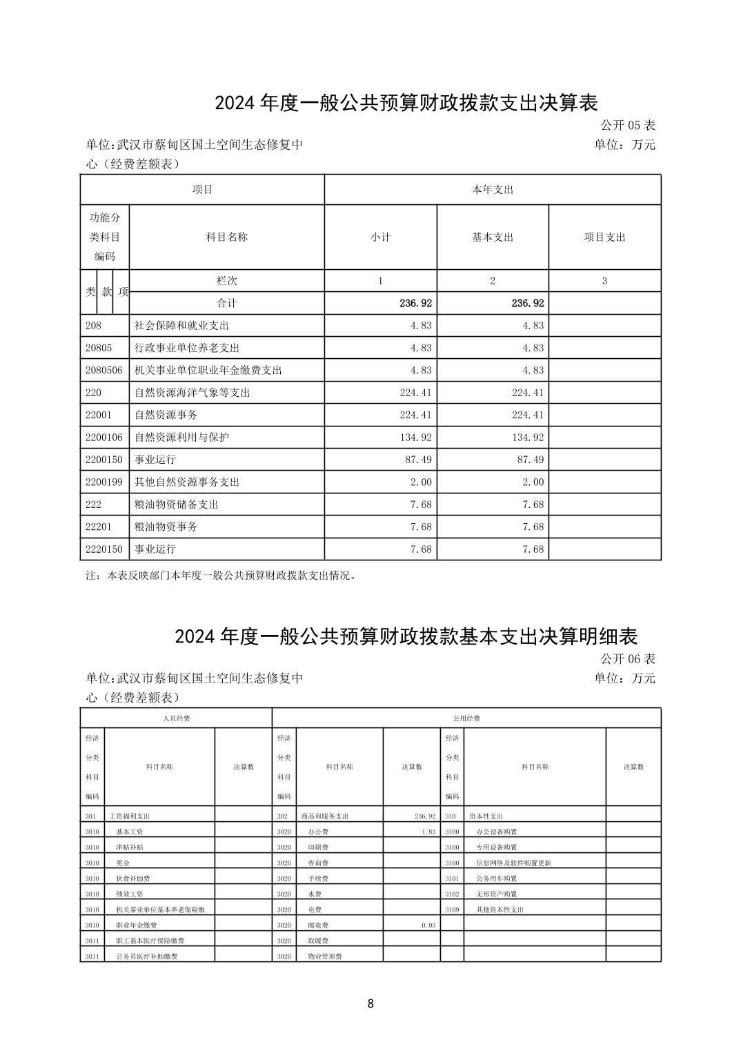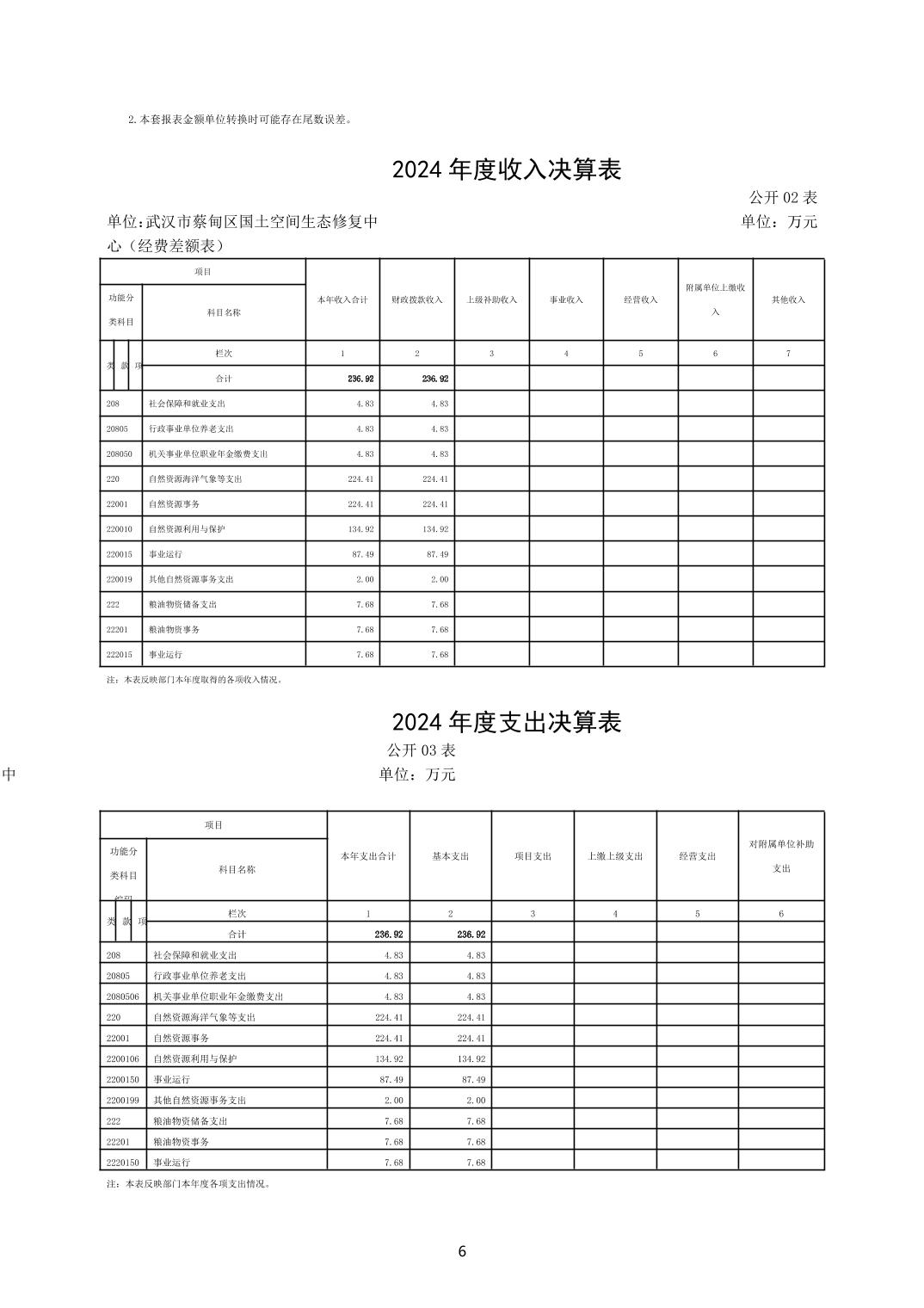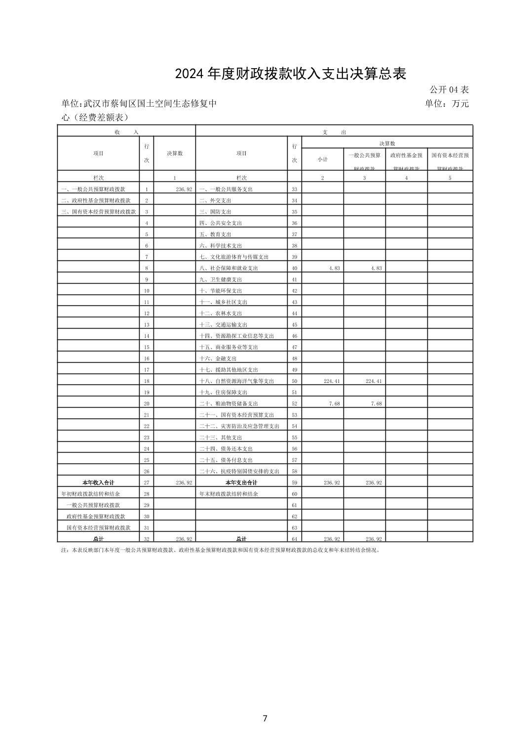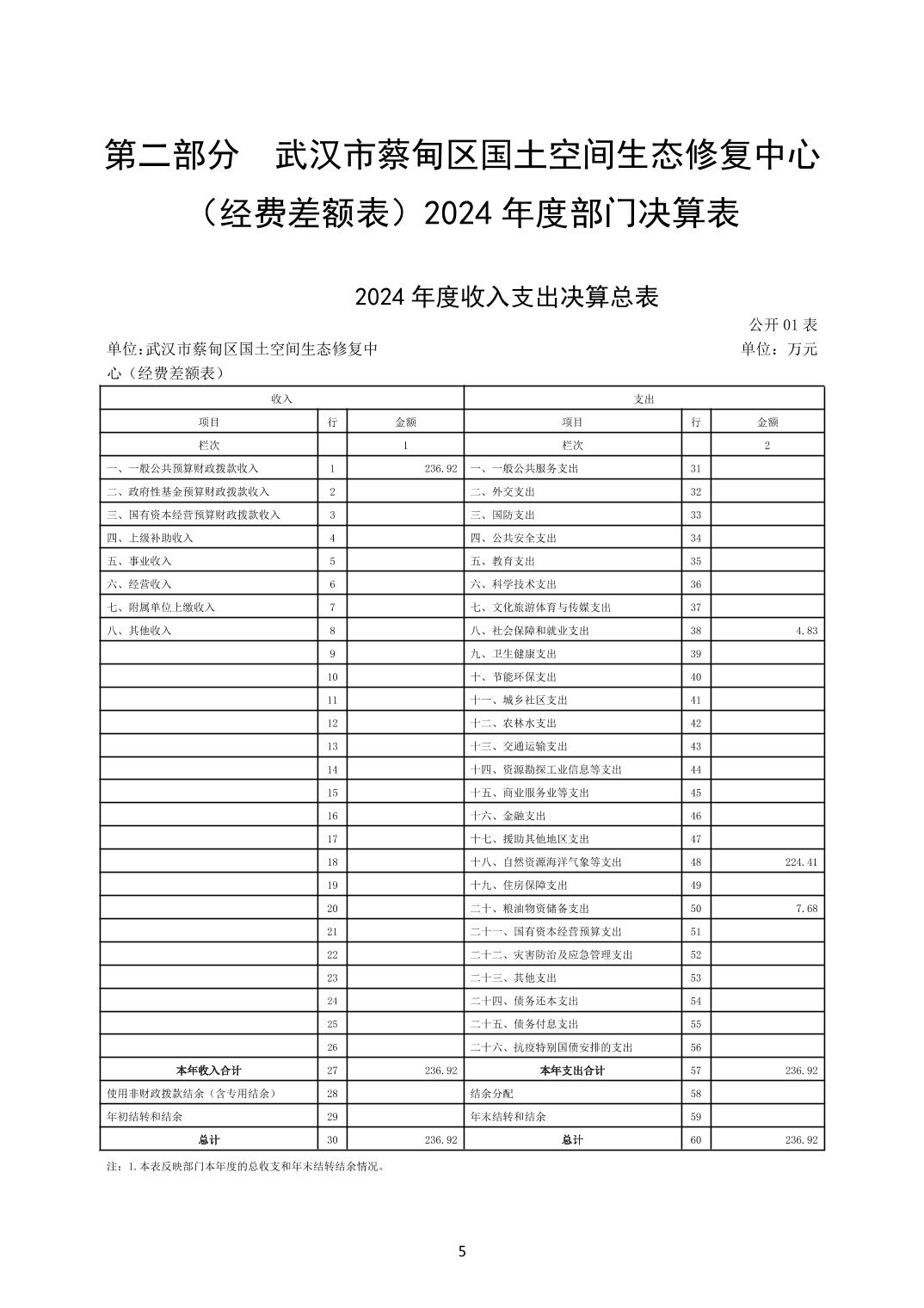 武汉市蔡甸区空间生态修复中心2024年部门决算公开