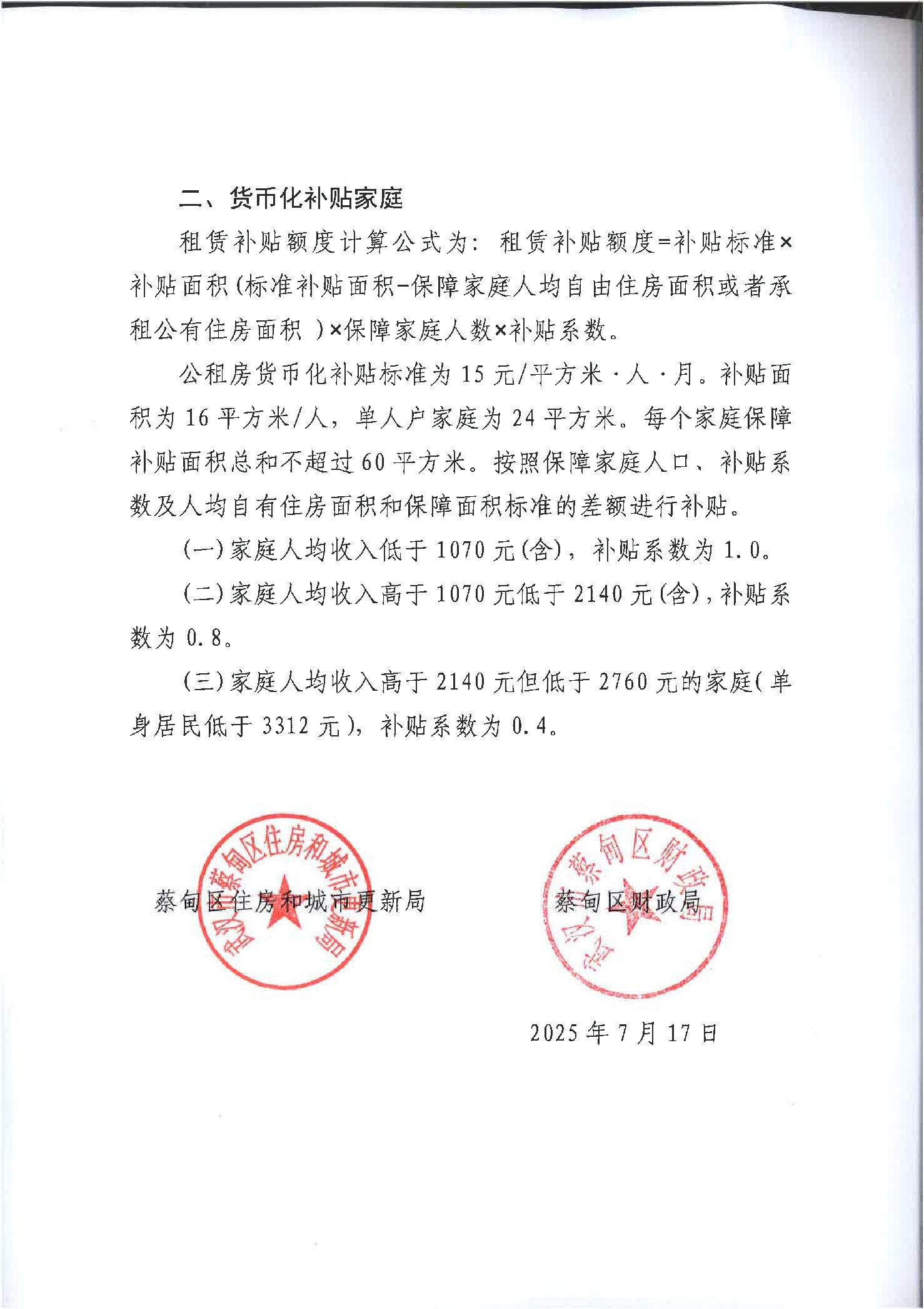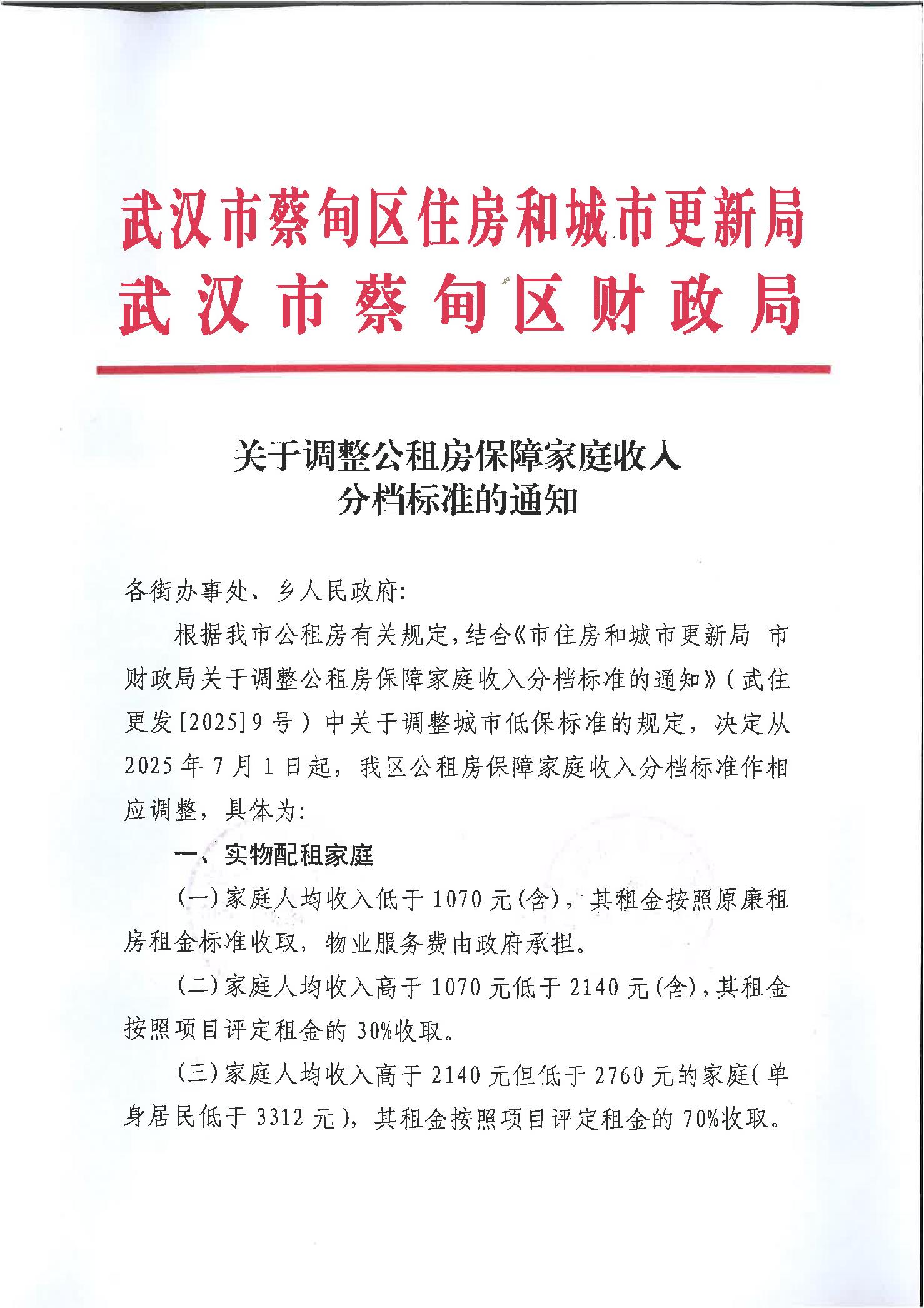 蔡甸区2025年关于调整公租房保障家庭收入分档标准的通知