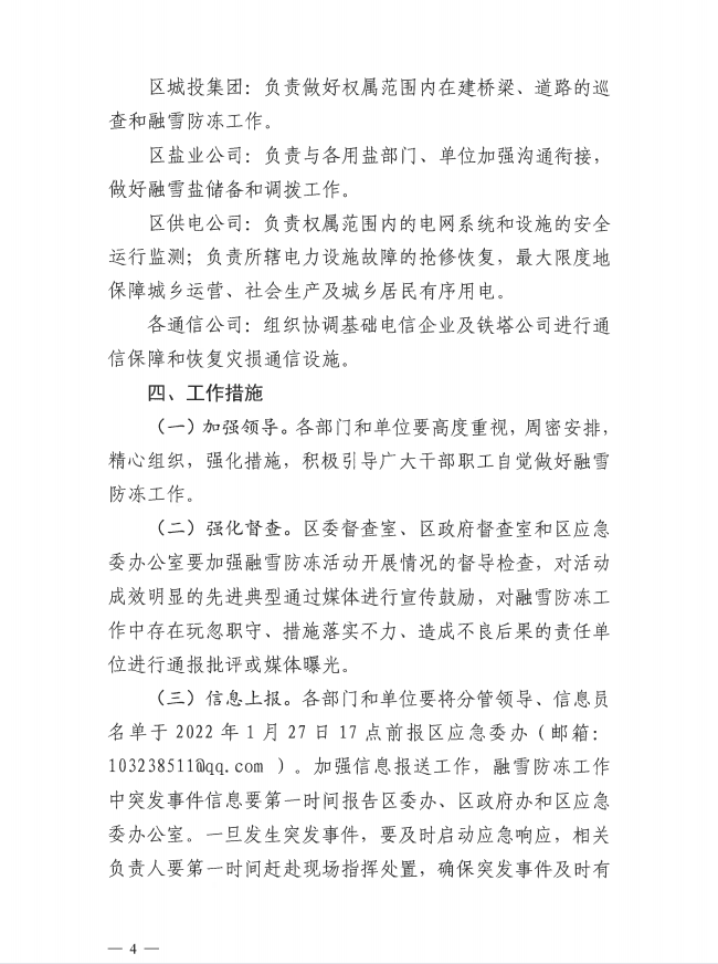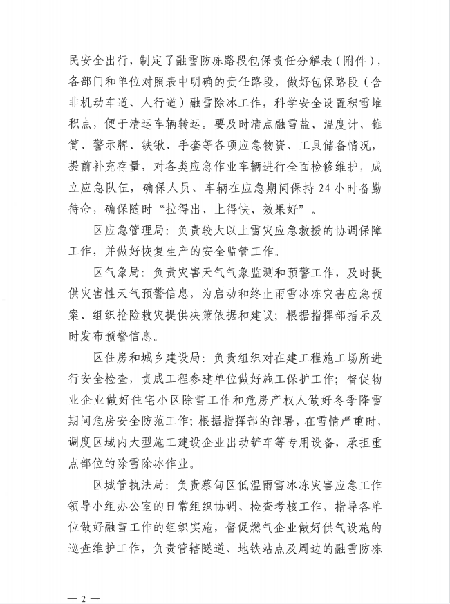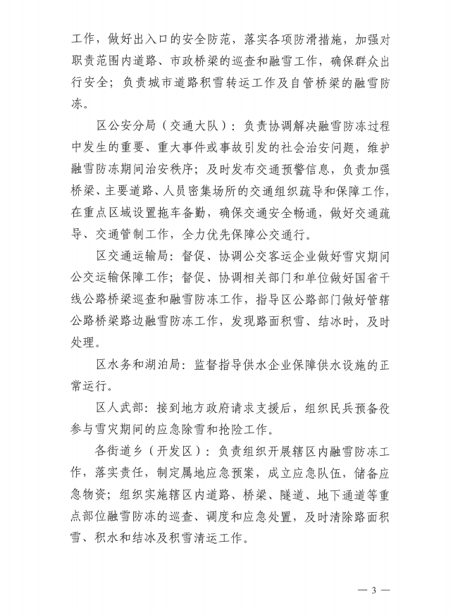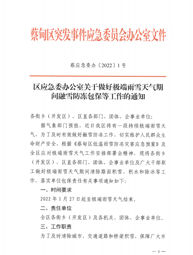 区应急委办公室关于做好极端雨雪天气期间融雪防冻包保等工作的通知